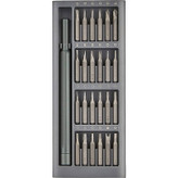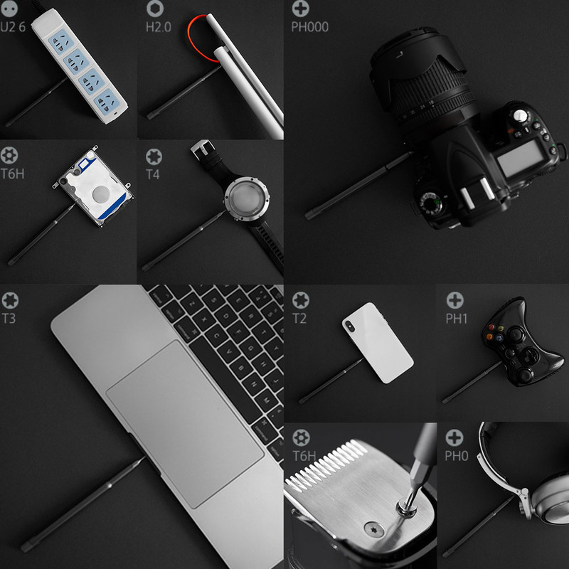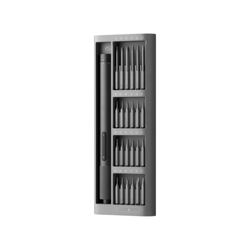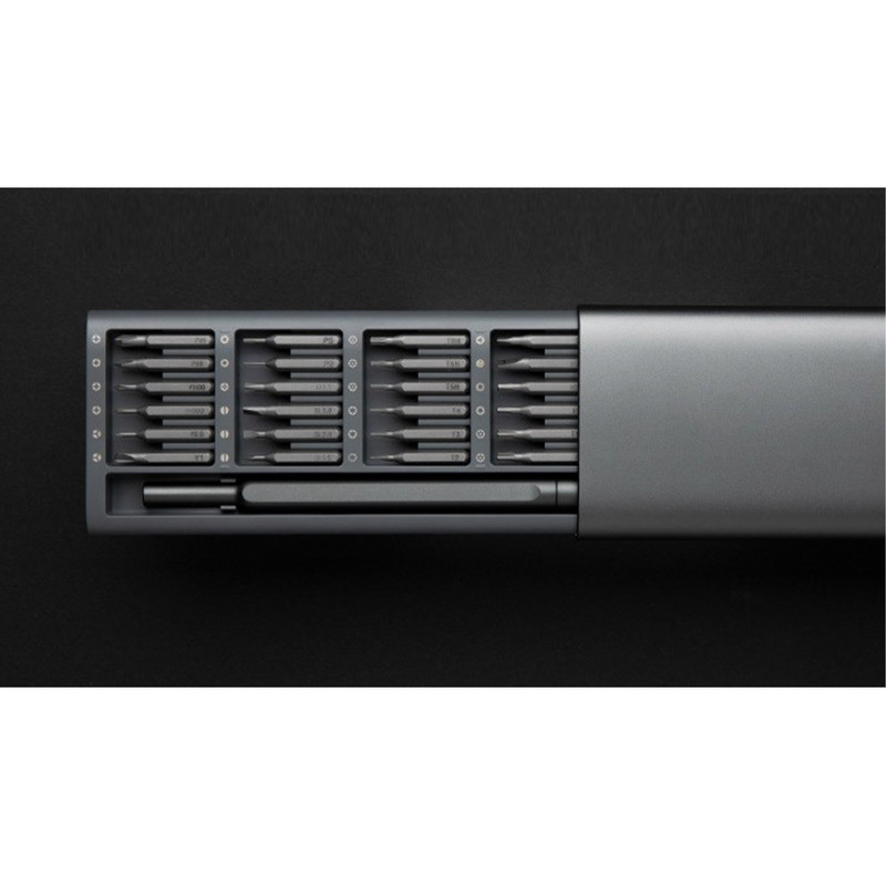 ست پیچ گوشتی دستی 24 تایی شیائومی مدل Mi Precision Screwdriver Kit دسته آلیاژ آلومینیوم همراه با طراحی سطح برش، آسان برای نگه داشتن و کار کردن دسته آلومینیومی این کیت با سطح سه قسمتی طراحی شده است که بهتر به انگشتان میخورد و به راحتی اعمال نیرو میکند. شاخک ها ظریف و غیر لغزنده هستند. با یک کلاهک چرخان طراحی شده خاص، می توان به طور مداوم و با یک دست با آن کار کرد. سبک و جمع و جور، حمل راحت تر از دیگر ویژگیهای این کیت است که تحت تاثیر عرض کمتر از 70 میلی متر و نازک بودن آن ایجاد میشود. بدنهی دسته دارای لبه های گرد، بدون درز در سرتاسر است که خاصیت ضد تعریق، ضد لغزش و ضد خوردگی را بوجود میآورد. جعبه نگهدارنده خاصیت مغناطیسی دارد که کلیه قطعات را برای جلوگیری از گم شدن به درون جعبه جذب میکند. این سریها با قابلیت آهنربایی با استفاده از فولاد و تراشکاری لیزری تولید شدهاند. دقت بسیار بالا در تولید این سریها منجر به تولید محصول بسیار با کیفیت با سختی HRC60 شده است. میزان مقاومت بسیار بالا در برابر سایش و خوردگی را میتوان هنگام کار با آنها تجربه کرد. کاور این مجموعه در یک کاور با جنس آلیاژ آلومینیوم قرار دارد. داخل این کاور به 4 قسمت تقسیم شده و سریهای مختلف پیچگوشتی با کاربردهای گسترده در جای مشخص قرار دارند. پردازش ریختهگری یکپارچه در تولید این کاور سبب ایجاد قوسهای بسیار چشمنواز و مدرن در ساختار آن شده است. این کاور خوشساخت در برابر ضربه و خوردگی مقاومت بسیار خوبی دارد. گفتنی است این کاور به صورت کشویی بوده و دسترسی بسیاری آسانی به تمامی سریهای پیچگوشتی خواهید داشت.