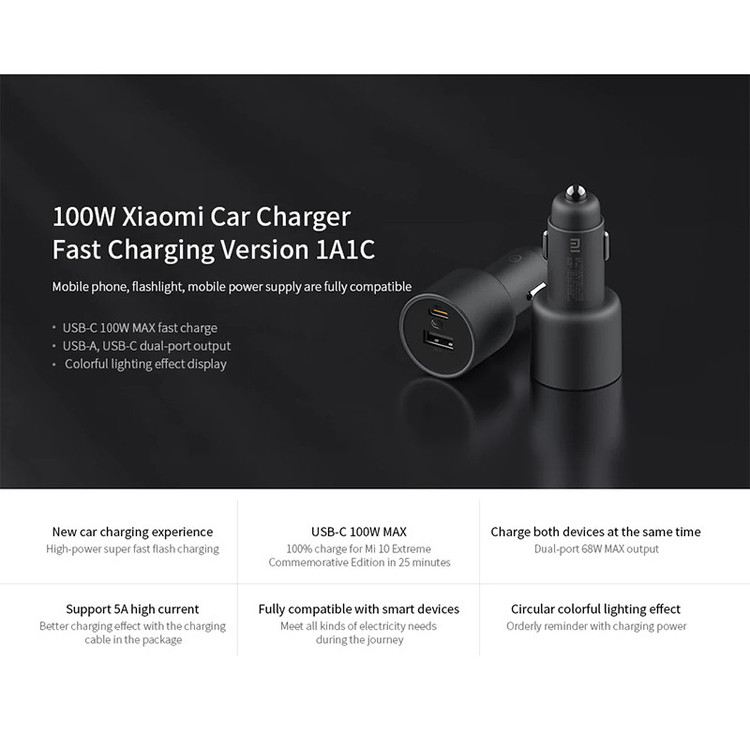 شارژر فندکی شیائومی 100 وات مدل CC07ZM-1A1C